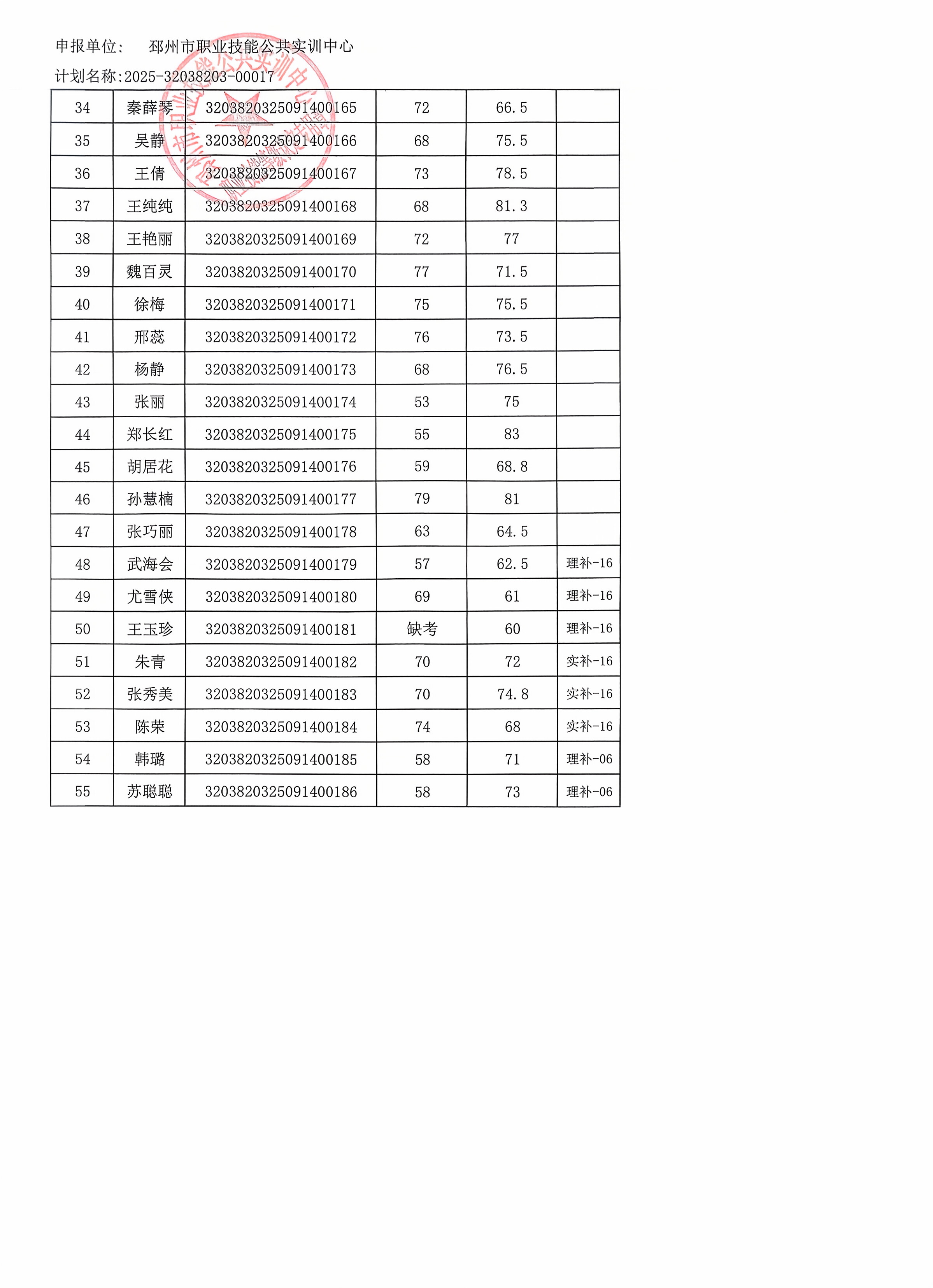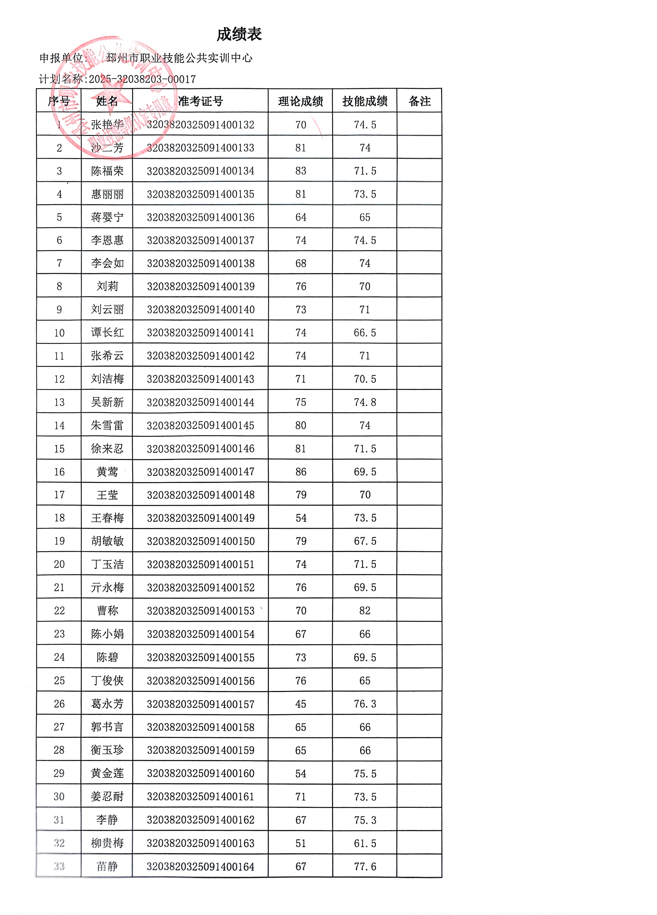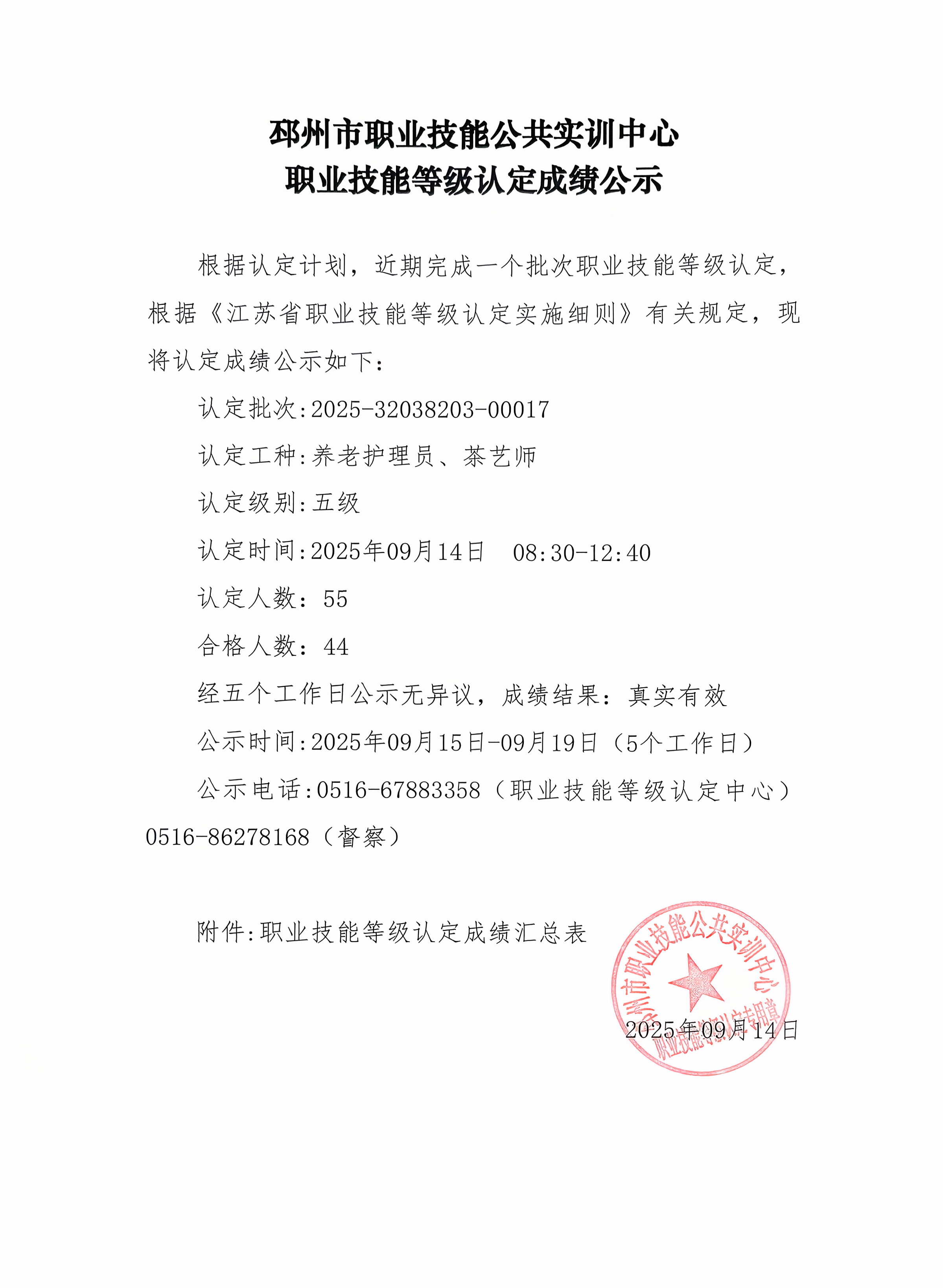 邳州市职业技能公共实训中心技能等级成绩公示-2025.09.14上午【25-17】