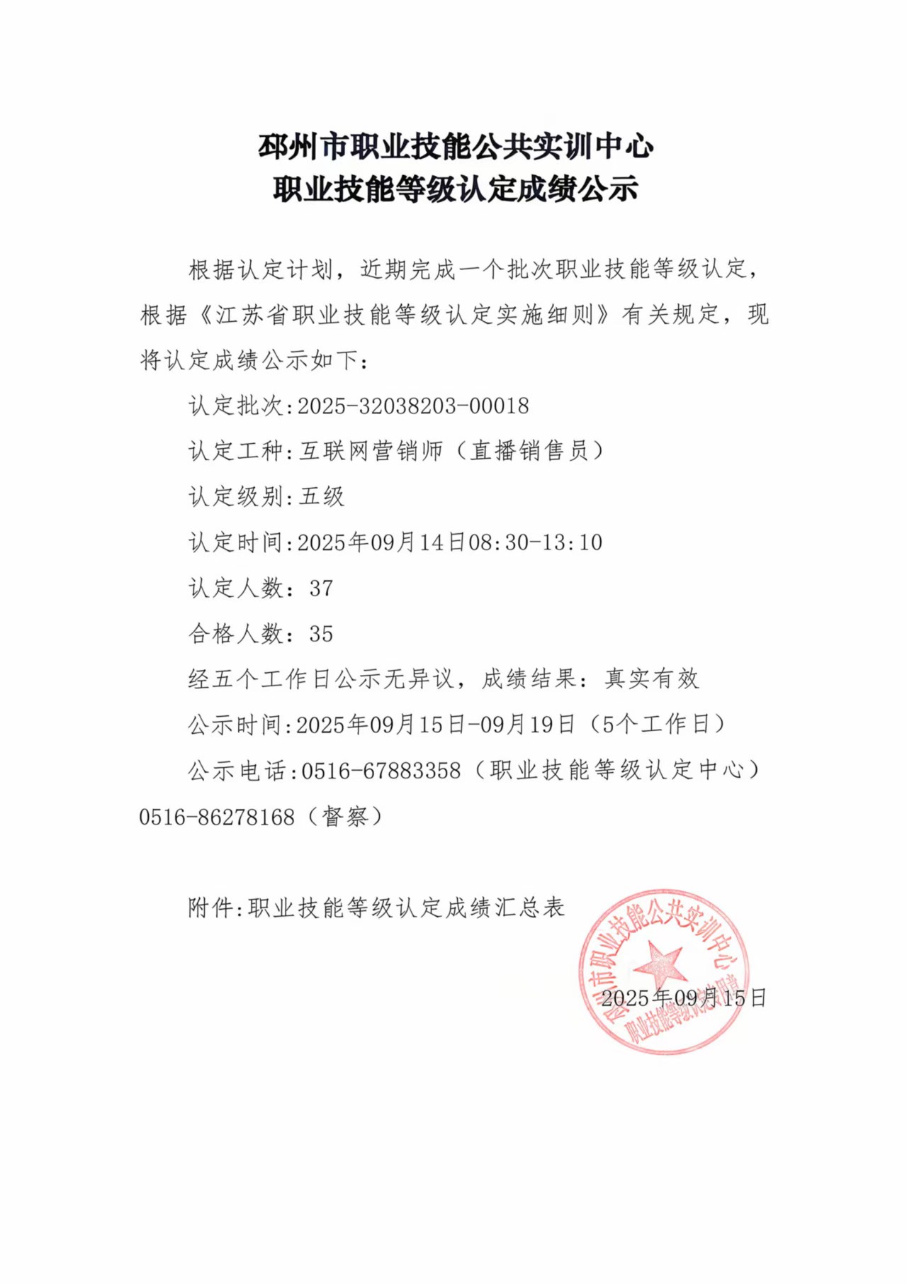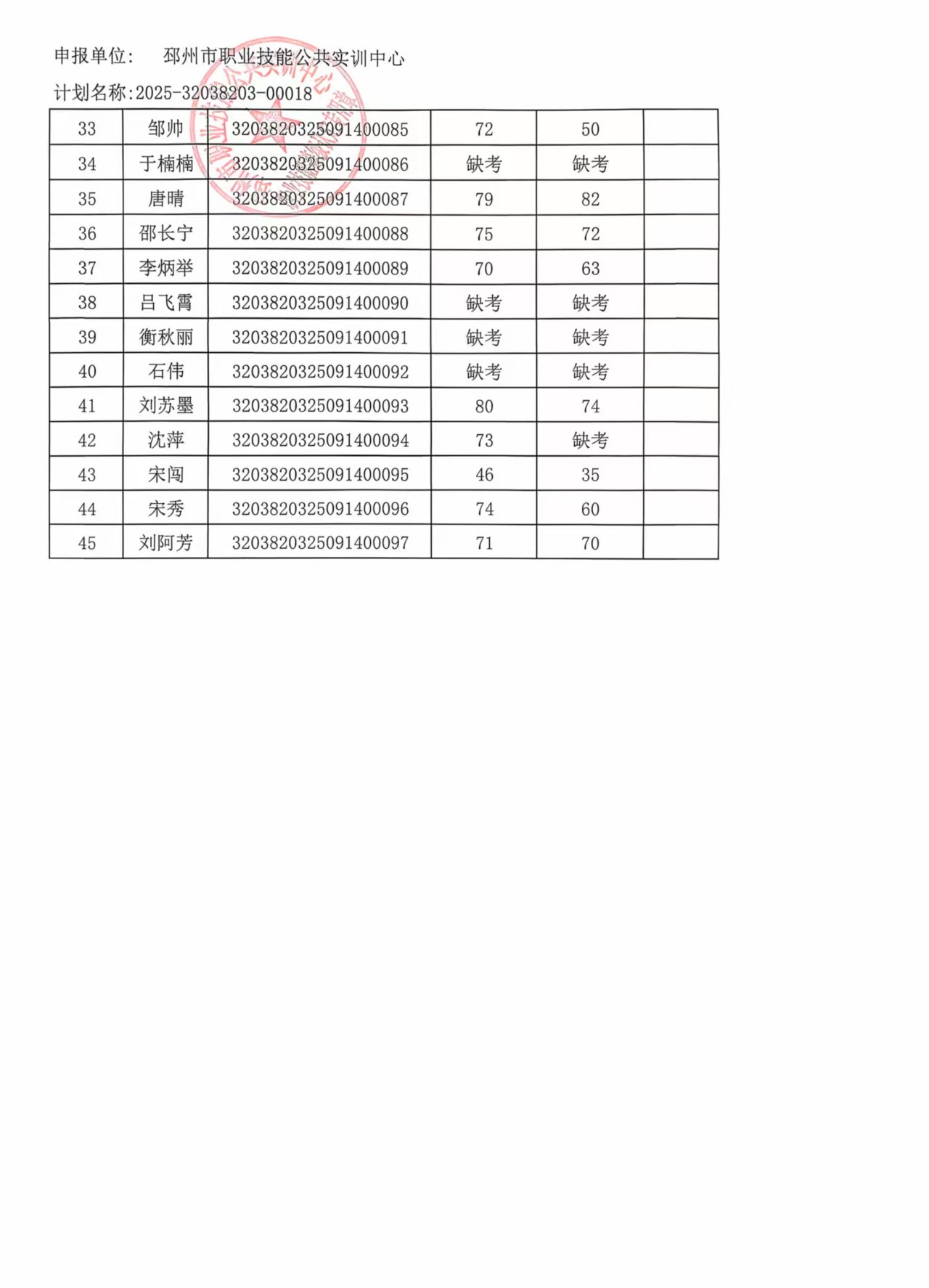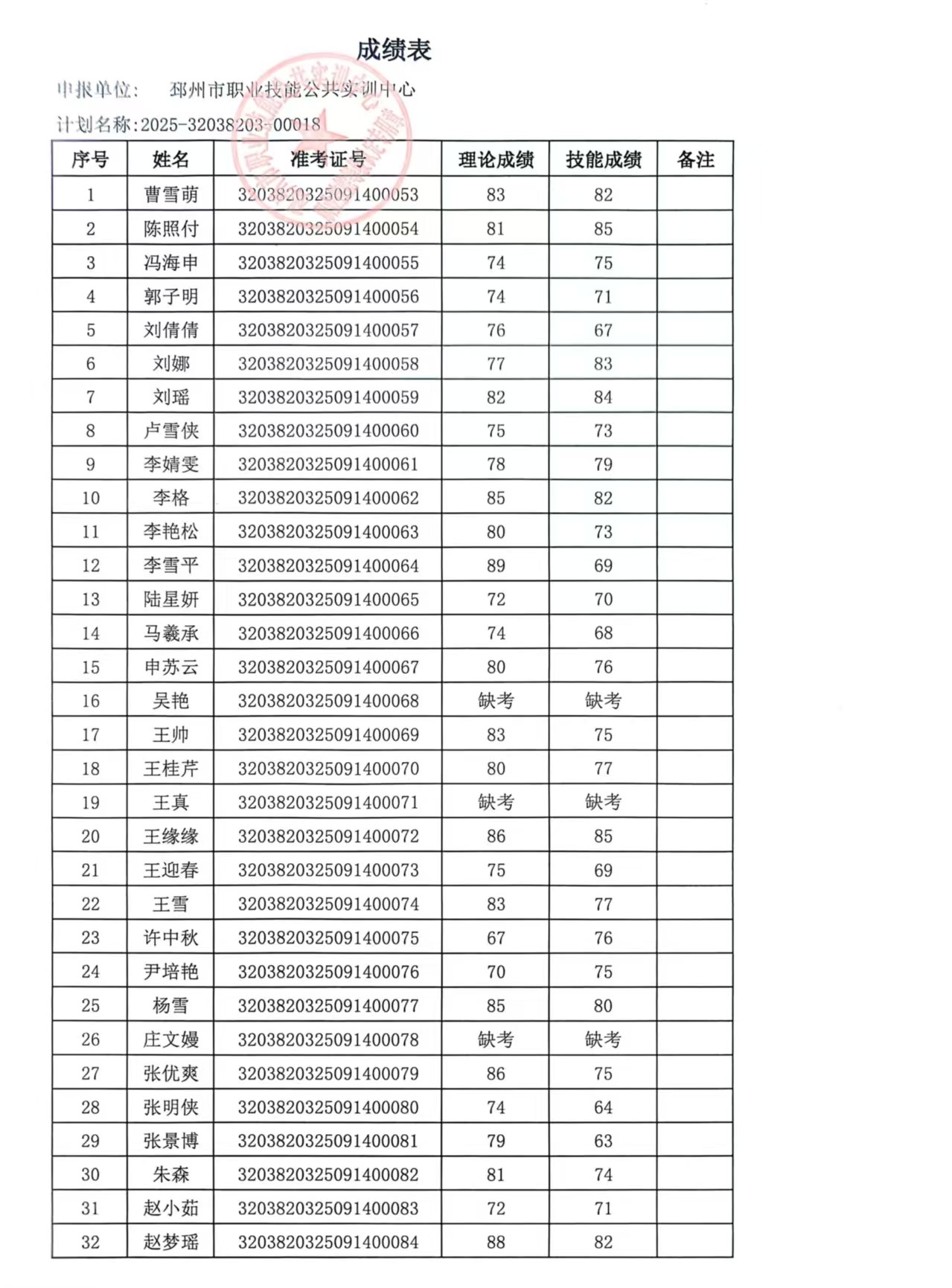 邳州市职业技能公共实训中心技能等级成绩公示-2025.09.14上午【25-18】