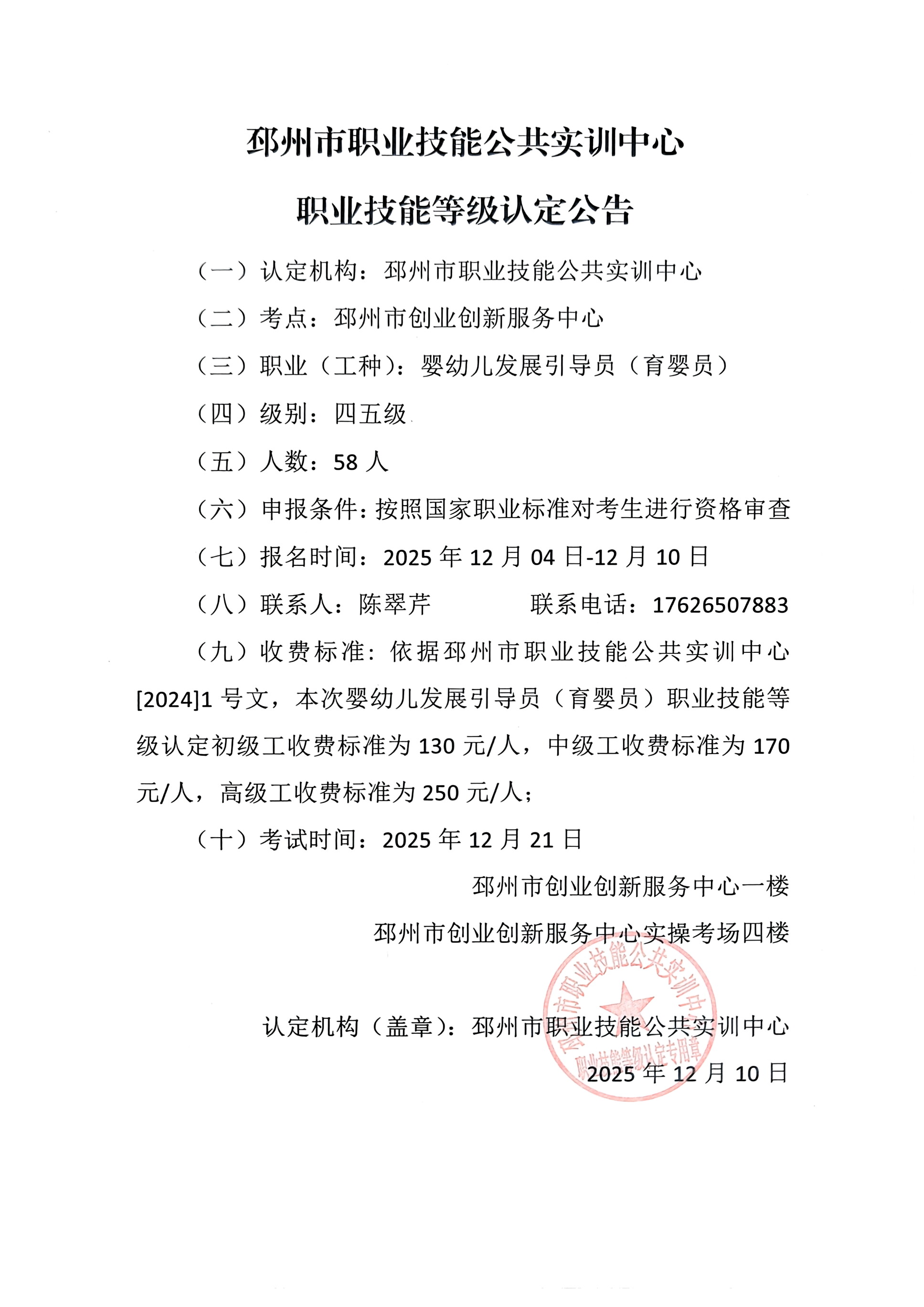 邳州市职业技能公共实训中心技能等级认定公告-2025.12.21上午【25-20】