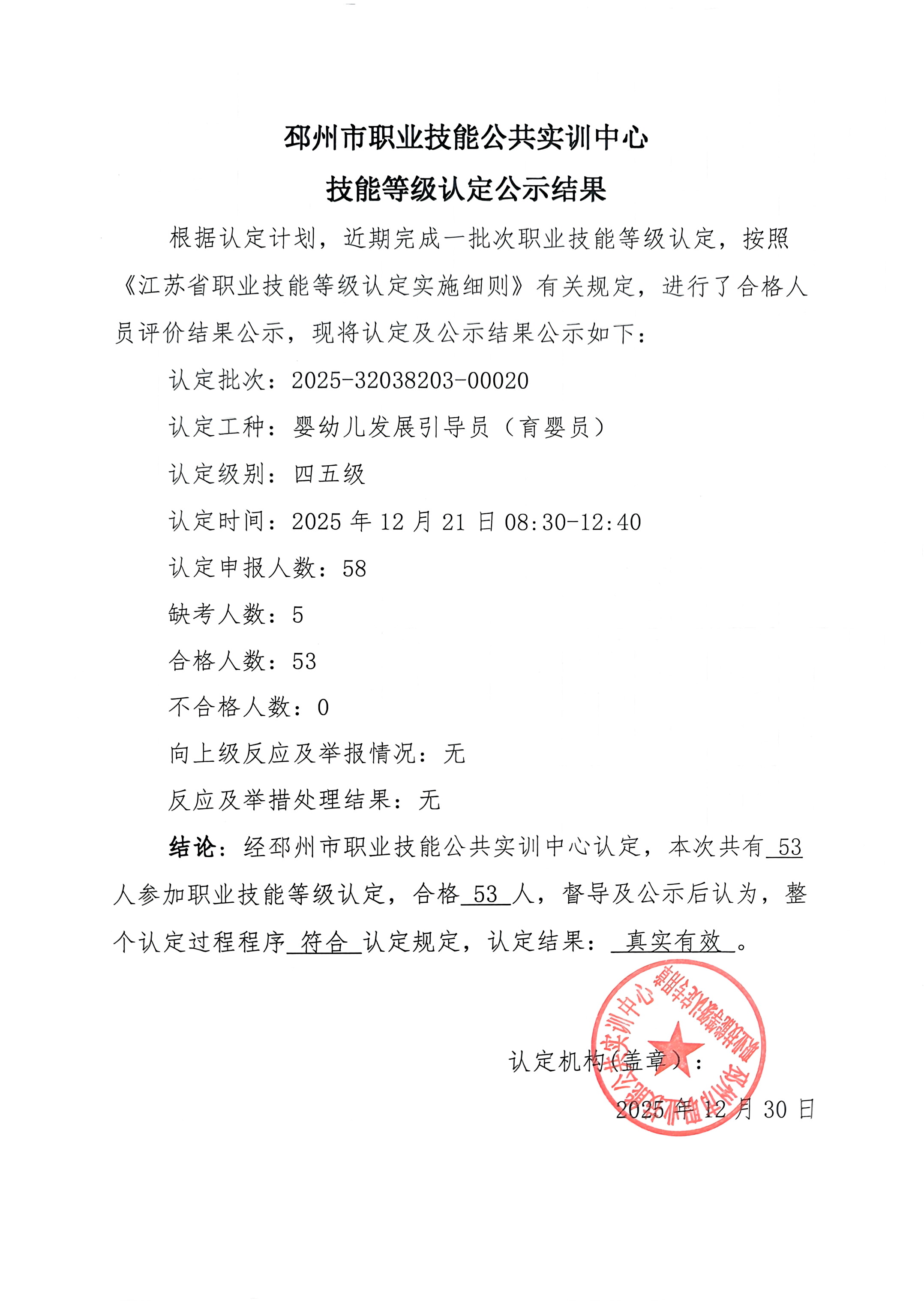 邳州市职业技能公共实训中心技能等级公示结果-2025.12.21上午【25-20】