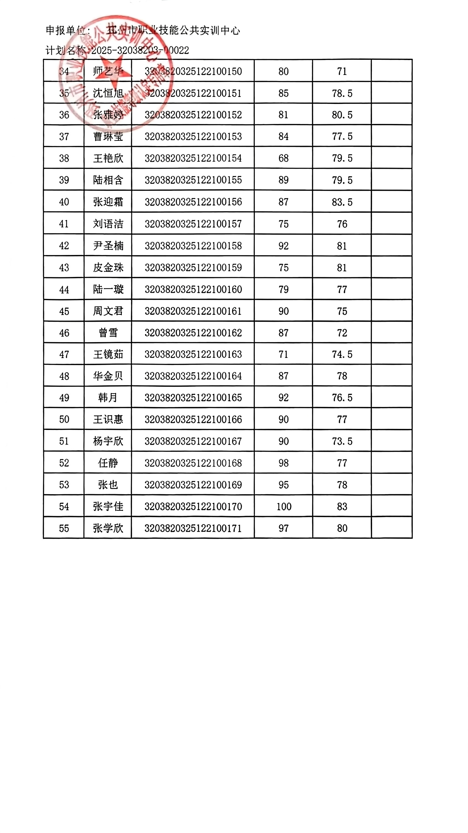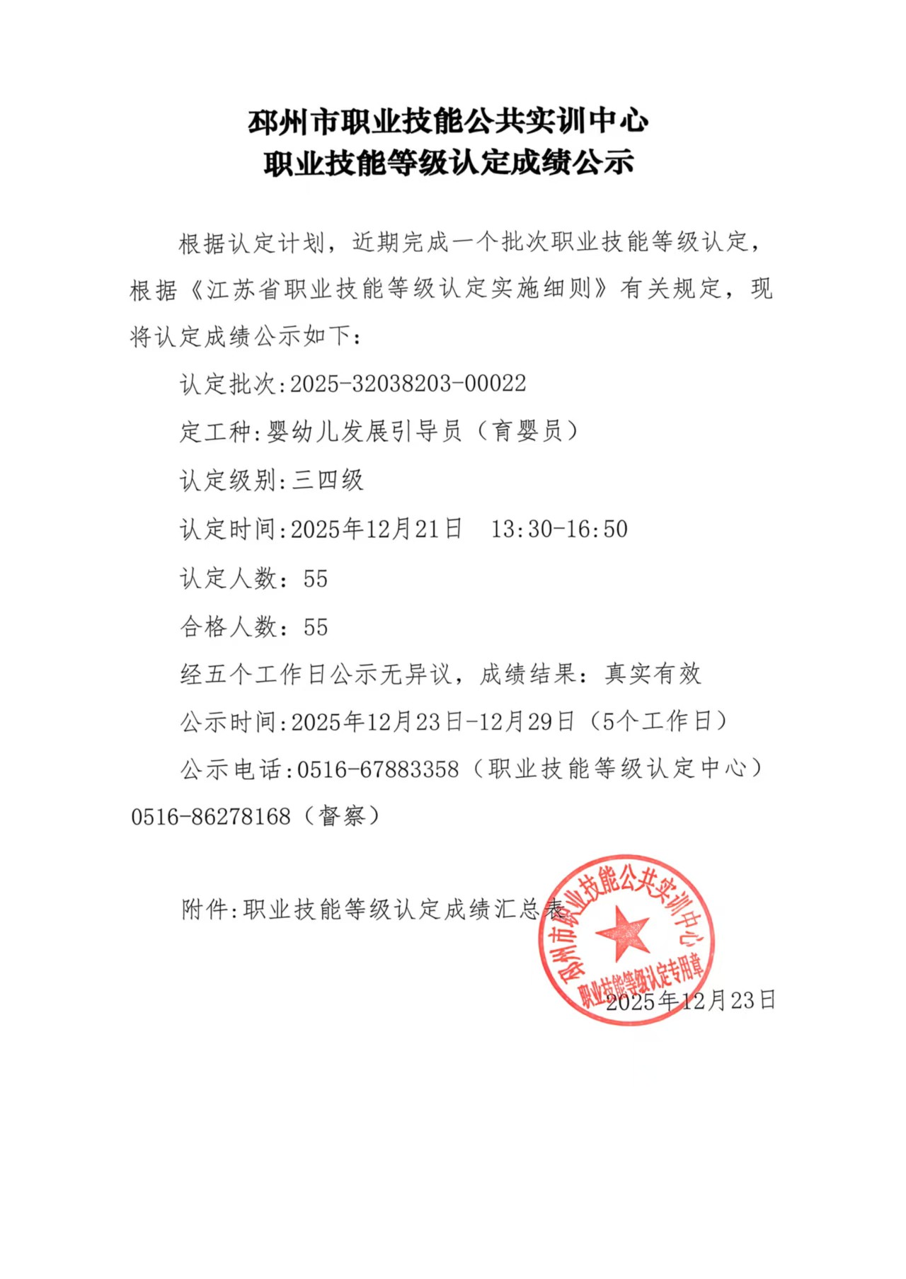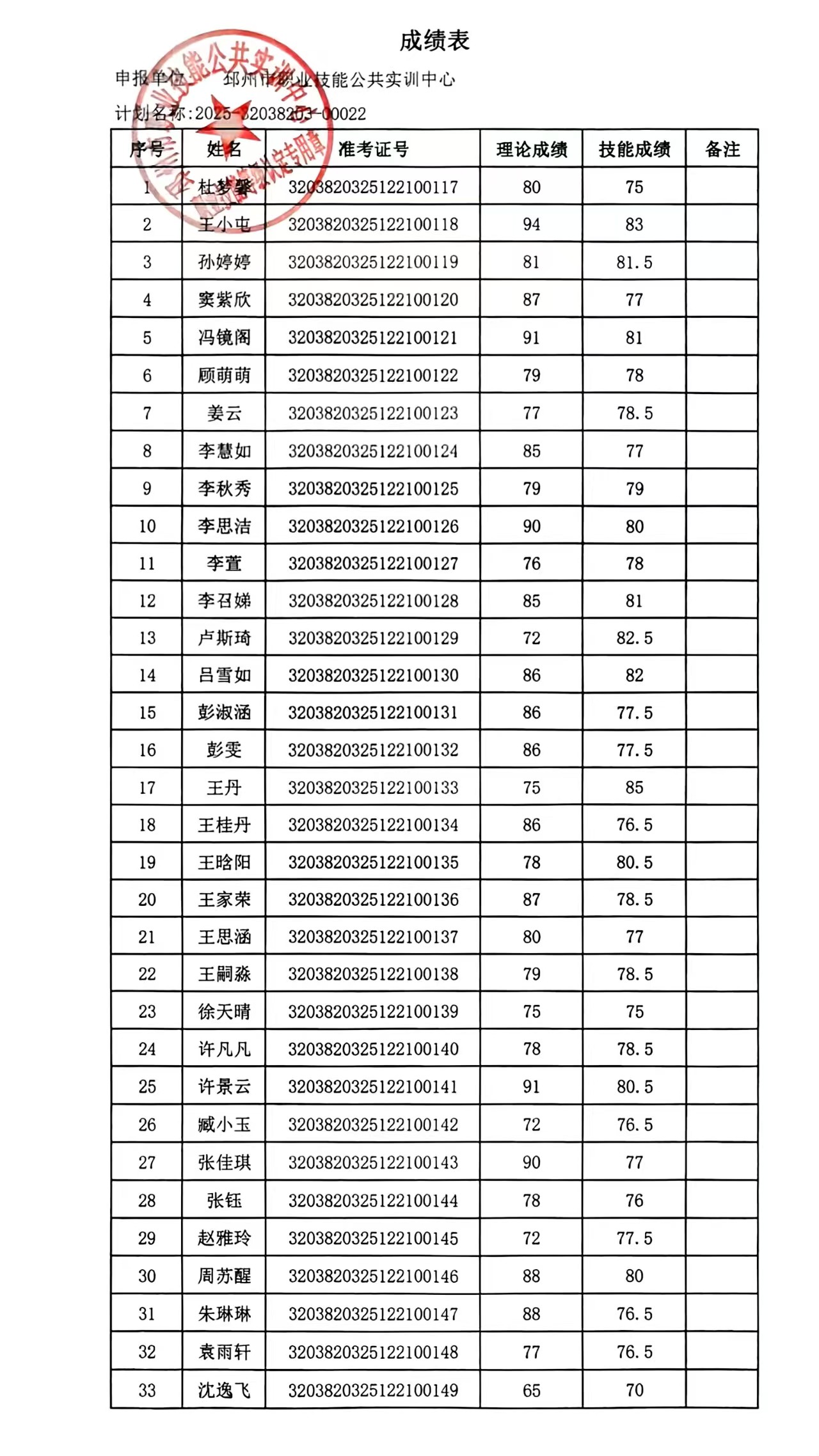邳州市职业技能公共实训中心技能等级成绩公示-2025.12.21下午【25-22】