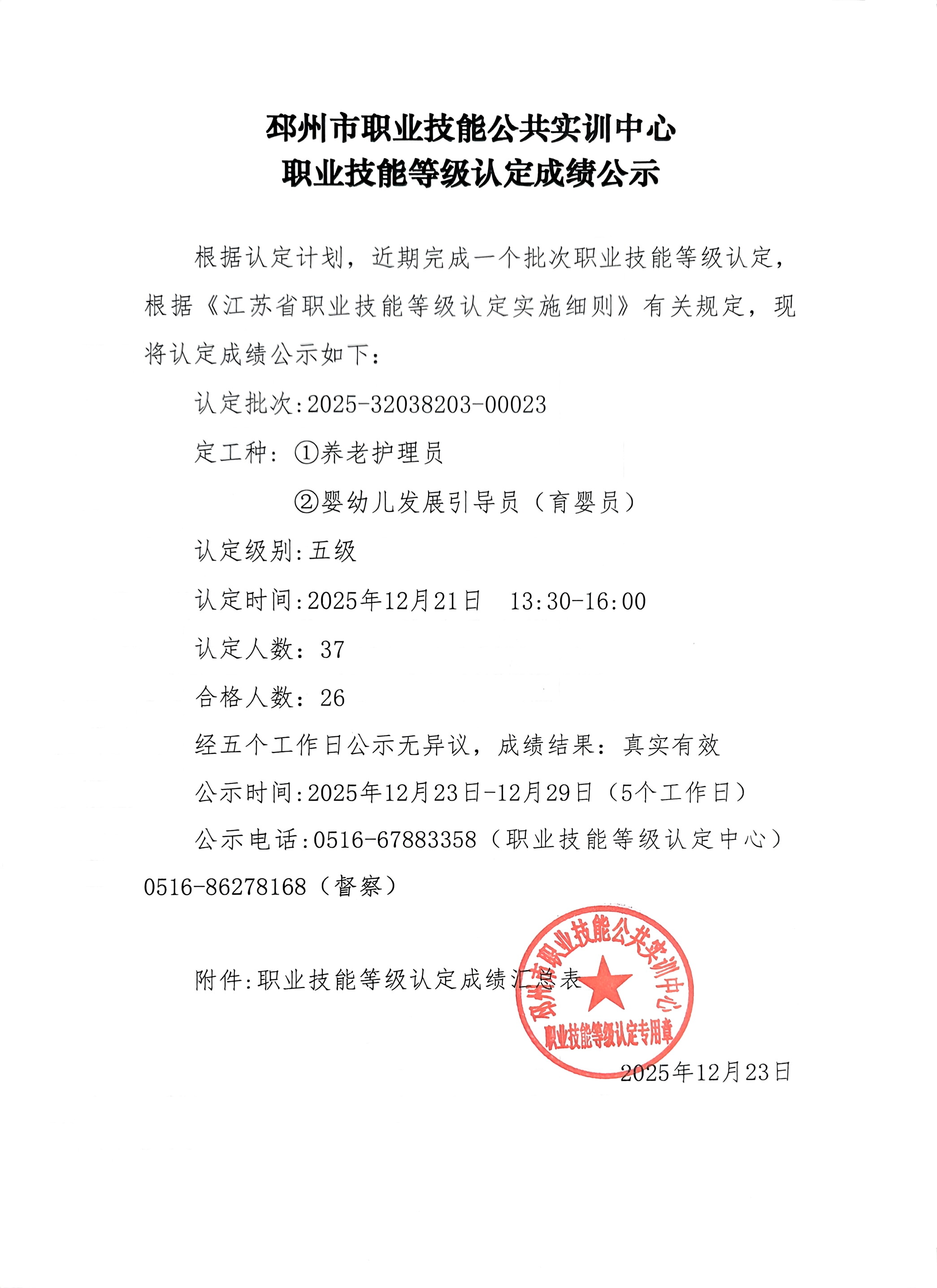 邳州市职业技能公共实训中心技能等级成绩公示-2025.12.21下午【25-23】